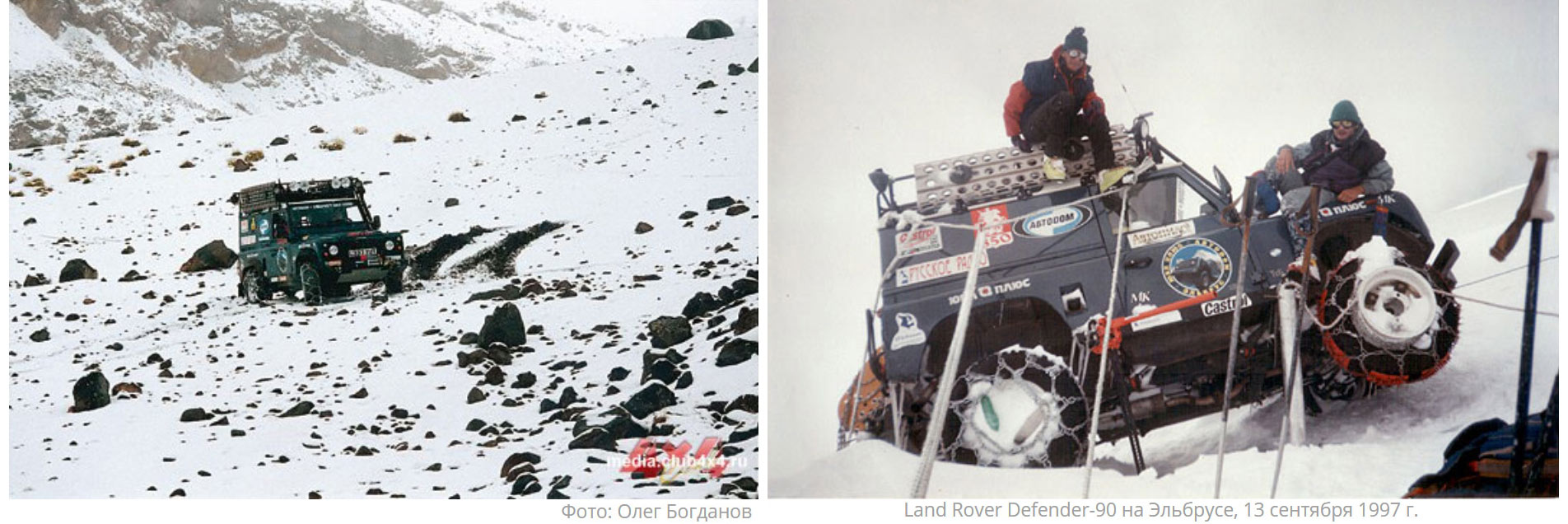 Не утихая отзывается эхо событий 1997 года, когда на склонах Эльбруса - высочайшей точки Европы - была проведена уникальная экспедиция, в ходе которой команда альпинистов и автогонщиков поднялась на Восточную вершину Эльбруса (5621 м) вместе с автомобилем Лендровер (Land Rover Defender-90). Cложнейшая операция завершилась успехом и 13 сентября 1997 года команда и автомобиль стояли на восточной вершине Эльбруса. Но на спуске случилось ужасное: автомобиль сорвался и много раз перекувырнувшись упал в расщелину, где и лежит до сих пор на высоте около 5 км.